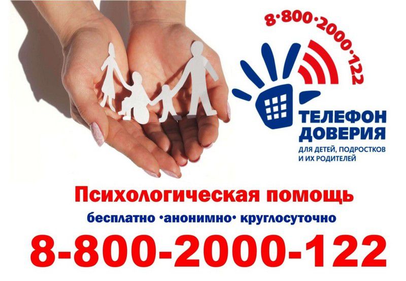 8 800 2000 122 Единый общероссийский телефон доверия - анонимно Экстренная психологическая помощь детям, родителям. Взаимоотношения детей и родителей, отношения детей со сверстниками, конфликтные ситуации