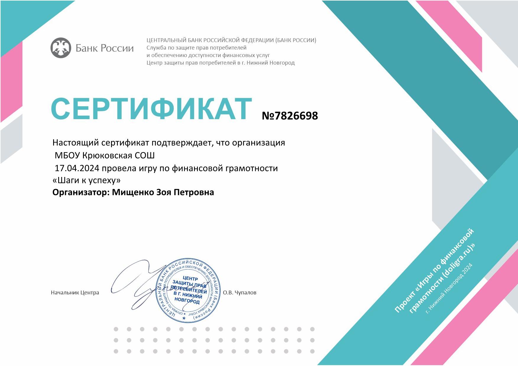 17 апреля 2024 года в 4 классе состоялась игра по финансовой грамотности «Шаги к успеху», которую провела с обучающимися учитель Мищенко З.П. Данную игру предоставил проект Банка России «Игры по финансовой грамотности (doligra.ru)» с целью повышения финансовой грамотности у детей.
