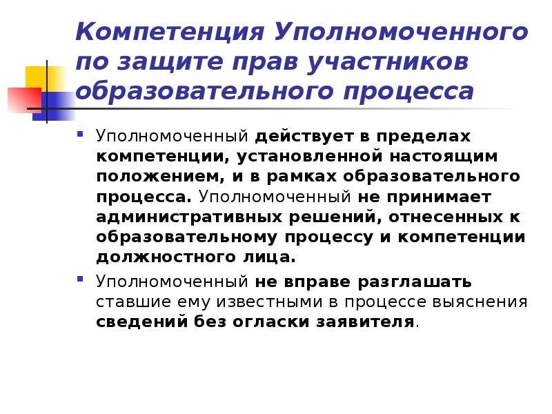 Компетенция уполномоченного
