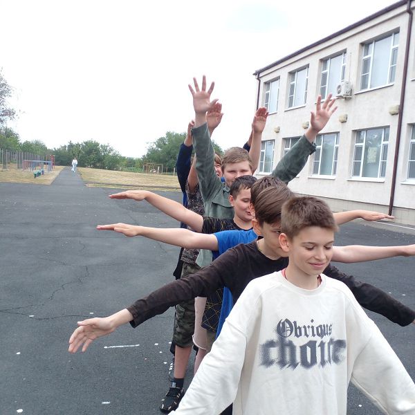 Бодрая и веселая зарядка в пришкольном лагере " Улыбка" МБОУ Крюковской СОШ.