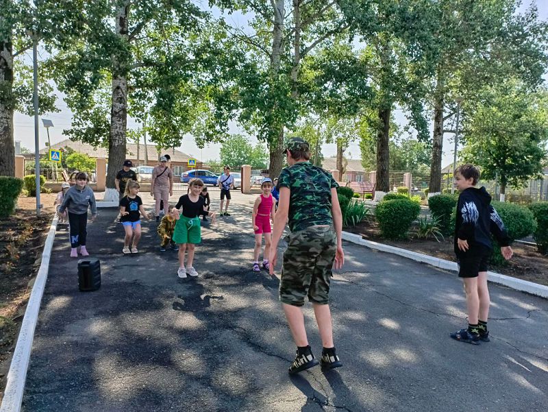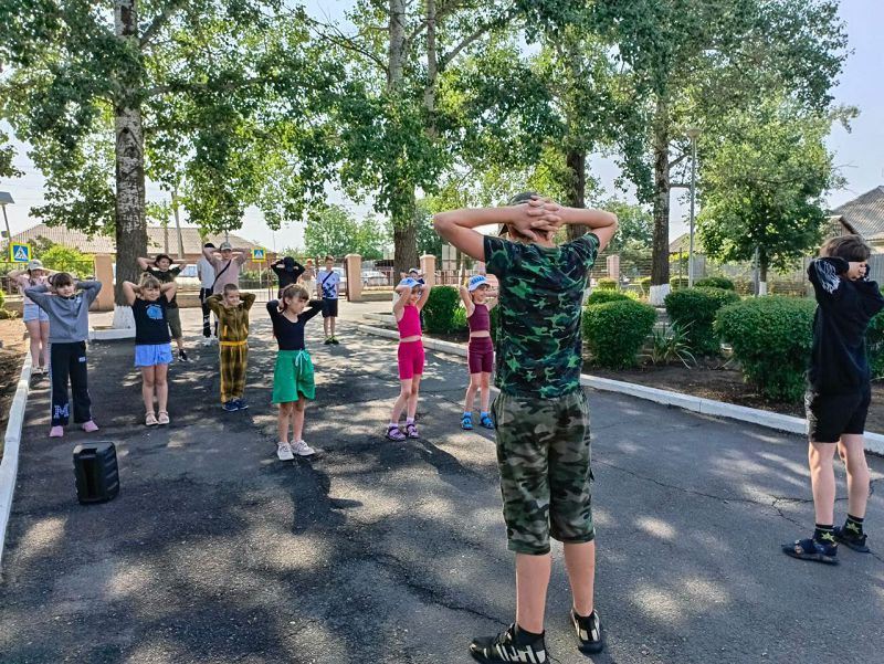 Утро в лагере " Улыбка" МБОУ Крюковской СОШ начинается с зарядки!