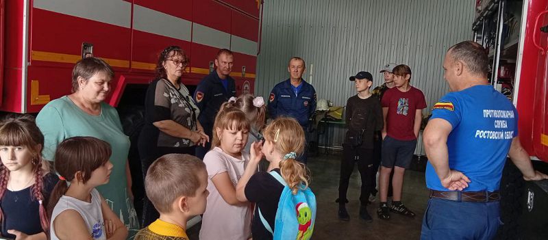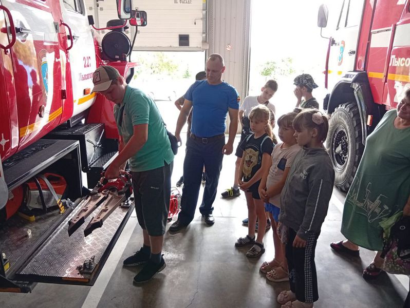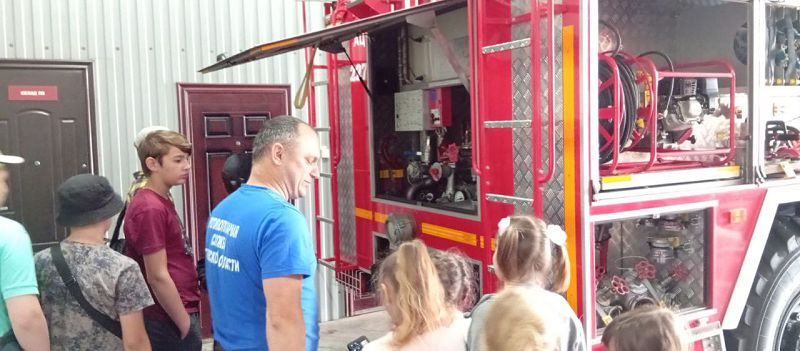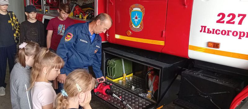 Сегодня на экскурсию в пожарно-спасательную часть 227 с.Лысогорка прибыли участники пришкольного лагеря " Улыбка".