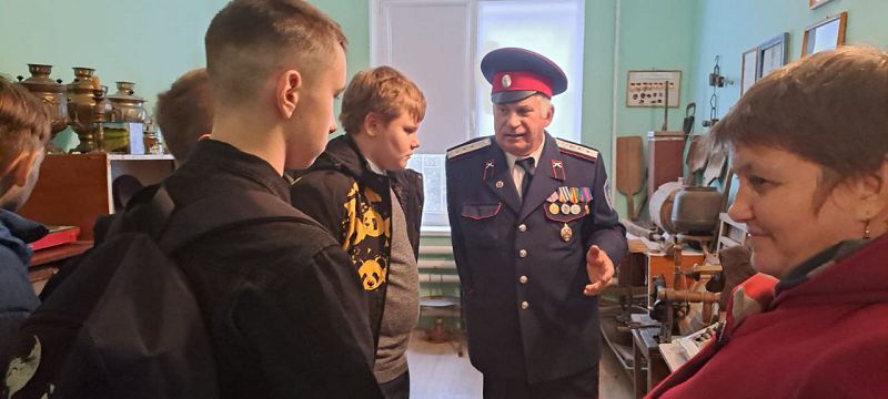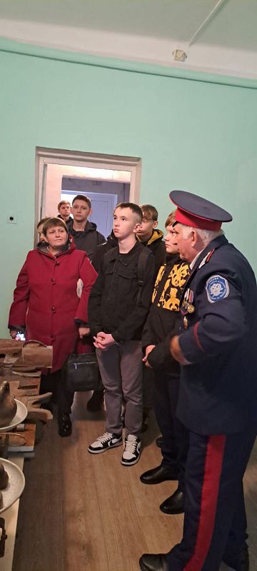 14.10.2024 казаки и казачки из МБОУ Крюковской СОШ посетили комнату Славы хуторского казачьего общества "Надежда".