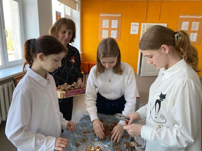 Кадеты из МБОУ Крюковской СОШ являются участниками краеведческого кружка " Поиск" (руководитель Литвинова Н.В) и принимают активное участие в акции "Мы вместе". Они собрали, очистили и разложили по порционным упаковкам орехи с надписями " С любовью бойцам из Крюковской школы".