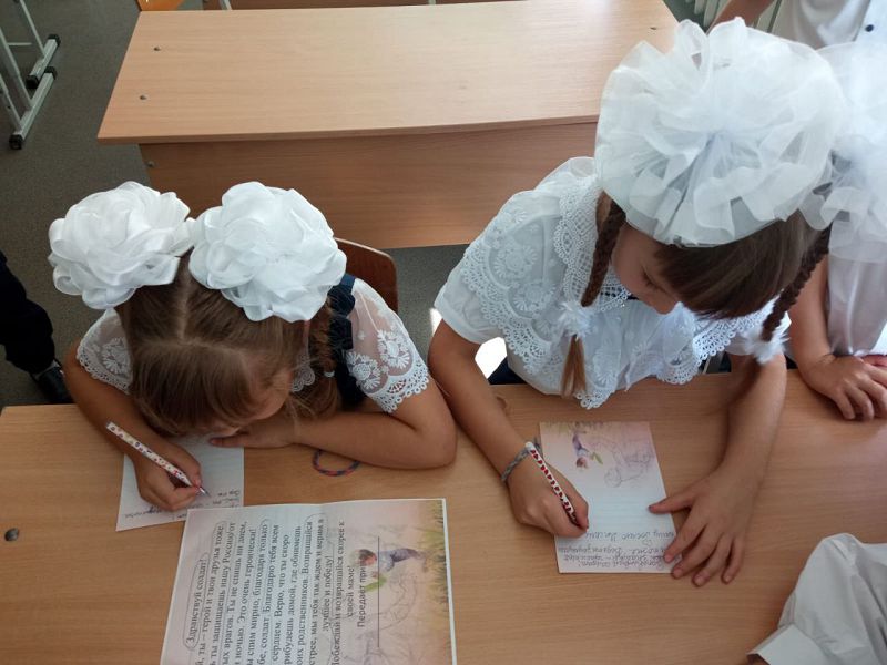 Учащиеся МБОУ Крюковской СОШ со статусом казачья всегда активно принимают участие в акции «Письма на фронт».