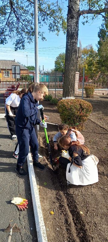 17.10.2025 в предверии единного Дня древонасаждения учащиеся и учителя МБОУ Крюковской СОШ со статусом казачья приняли активное участие в двух главных экологических акциях, которые обьединены в один день(осенний субботник и День древонасаждения).