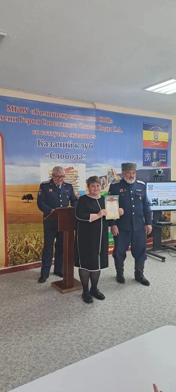 17 февраля на базе МБОУ Большекрепинской СОШ имени Героя Советского Союза Пода П.А. состоялась первая межрайонная научно- практическая конференция " Великая Отечественная война в истории Донского края : поиск, события, источники, память", посвященные Году казачьей истории и культуры. Учащаяся 10 класса Чепурных Мария стала победителем в номинации: "Семейная память о военном лихолетье".