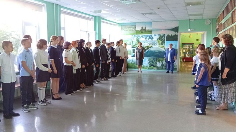 Учебная неделя в МБОУ Крюковской СОШ со статусом казачья традиционно началась с линейки, поднятия флага и исполнения гимна.
