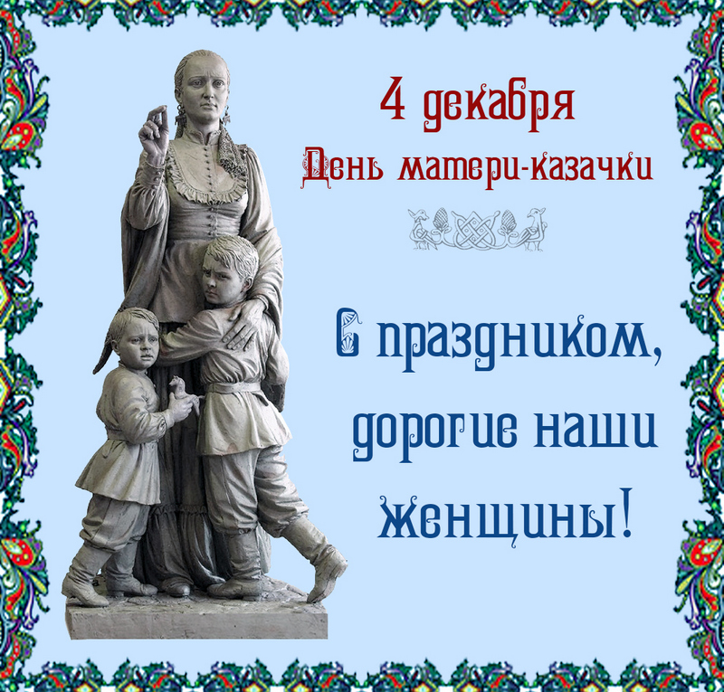 Более 200 лет День Матери-казачки отмечается казаками 4 декабря - на великий православный праздник Введения во Храм Пресвятой Богородицы.