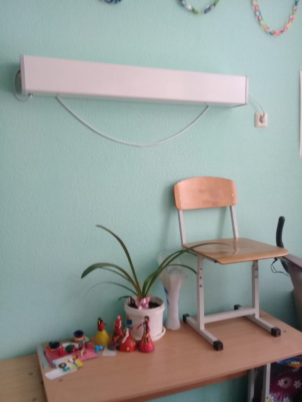 8.В учреждение поступило 11шт настенных облучателей  медицинских бактерицидных  «Азов», которые  установлены в каждом учебном кабинете и регулярно используются для обеззараживания воздуха во  2-ой половине дня согласно утверждённого графика. Также в учреждении имеется  бактерицидный переносной облучатель «ОРУБп-3-3Кронт Дезар-4, который  используется  в 1-ой и 2-ой половине дня согласно утверждённого графика.