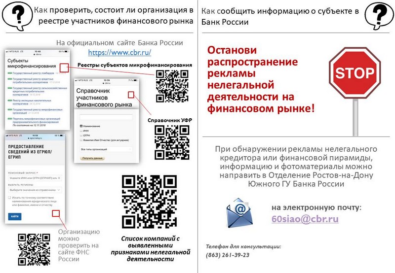 Памятки для населения о рисках получения незаконных финансовых услуг и административной ответственности за распространение рекламы таких услуг, разработанные министерством экономического развития Ростовской области