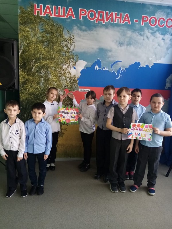 В целях гражданско-патриотического воспитания детей и в связи с датой присоединения Крыма к России, в период с 15 по 18 марта в МБОУ Крюковской СОШ проведены следующие мероприятия: уроки мужества, целью которых было показать историческую роль полуострова Крым в истории и современности России, миротворческий и гуманистический характер действий России; уроки – презентации.