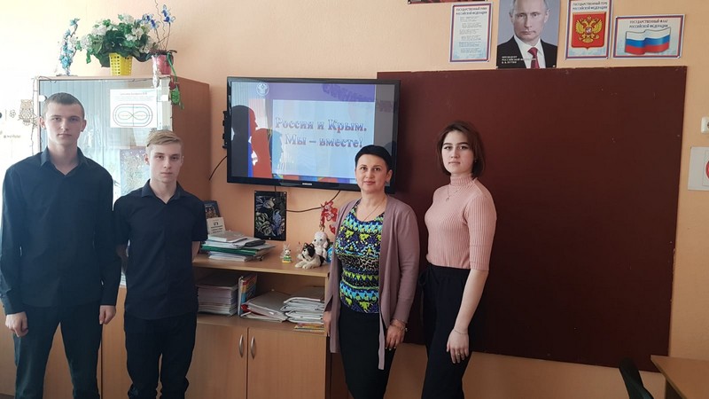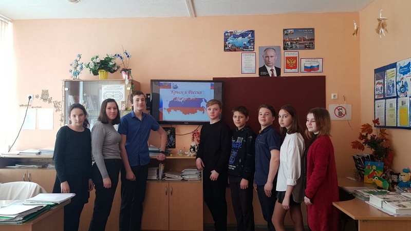 Педагоги рассказали об истории Крыма, о событиях, приведших к всенародному референдуму в Крыму и о создании Крымской Республики. Учащиеся изучили сведения о географическом положении Крыма, о его историческом и культурном прошлом. Приглашенный на уроки библиотекарь перечислила основные исторические вехи политических событий на Украине, провела заочное путешествие по местам Крымского полуострова, по итогам которых детьми выполнены рисунки.