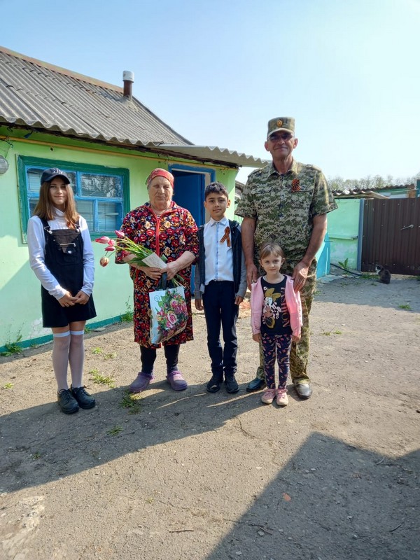 В преддверии Дня Победы ребята подготовили поздравительные открытки, теплые слова и пожелания, в поддержку Всероссийской акции «Георгиевская ленточка» повязывали ленточку и вручали сирень жителям нашего хутора, видевшим Великую Отечественную войну своими глазами.