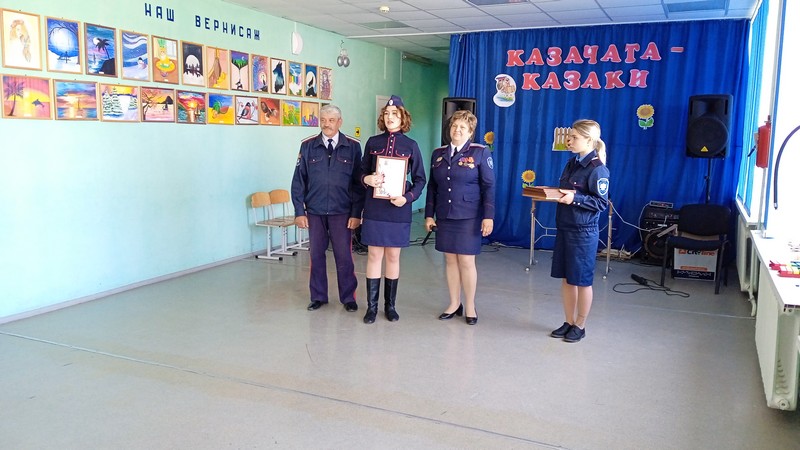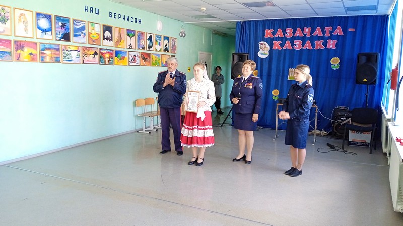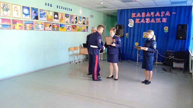 На концерте присутствовали Заместитель атамана ЮКО "Куйбышевской юрт", Шевченко Марина Алексеевна, Атаман ХКО «Тузлов» Солодилов Сергей Николаевич, руководитель КДМО «Донцы» Куйбышевского района Рудакова Анна Юрьевна. Марина Алексеевна вручила грамоты и благодарственные письма Атамана ЮКО "Куйбышевской юрт" Б.В.Ставитского учителям и учащимся нашей школы.