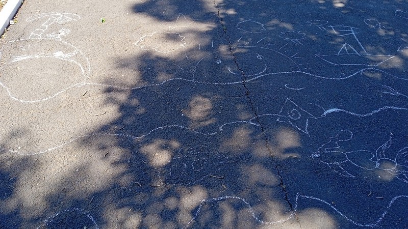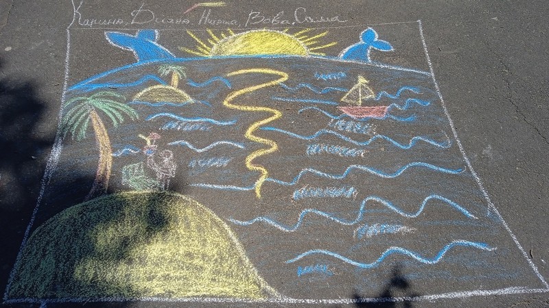 В заключение Ребята с увлечением изобразили тематические рисунки на асфальте.