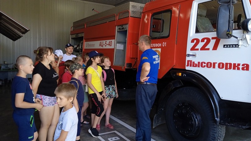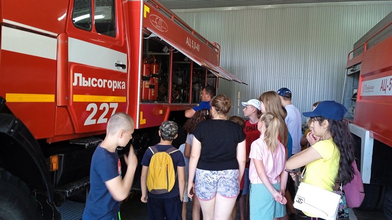 14 июня 2022 года ребята из детского оздоровительного лагеря «Улыбка» побывали на экскурсии в Пожарной части №227 с.Лысогорка.