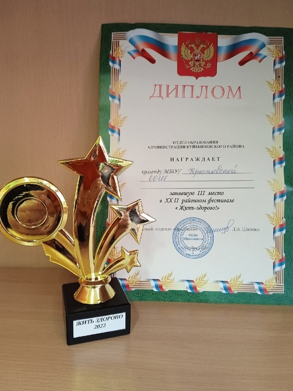 29.11.2022 года состоялся районный фестиваль "Жить - здорово!". Команда учащихся МБОУ Крюковской СОШ заняла 3 почетное место. Члены жюри отметили арт-объект нашей команды, подготовленный Шпаковым Никитой, учащимся 10 класса.