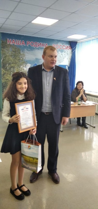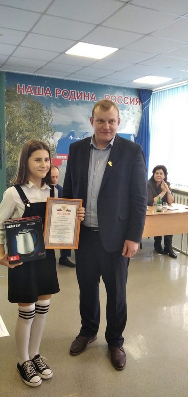 24.11.2022 года исполняющий обязанности главы Администрации Куйбышевского района - Голосовский А.В. вручил дипломы и памятные призы учащимся МБОУ Крюковский СОШ Груздовой Алине (6 класс) и Дьяченко Наталье (7 класс), занявшим 2 и 3 место в районном конкурсе детских творческих работ "Защита прав потребителей глазами молодого поколения".