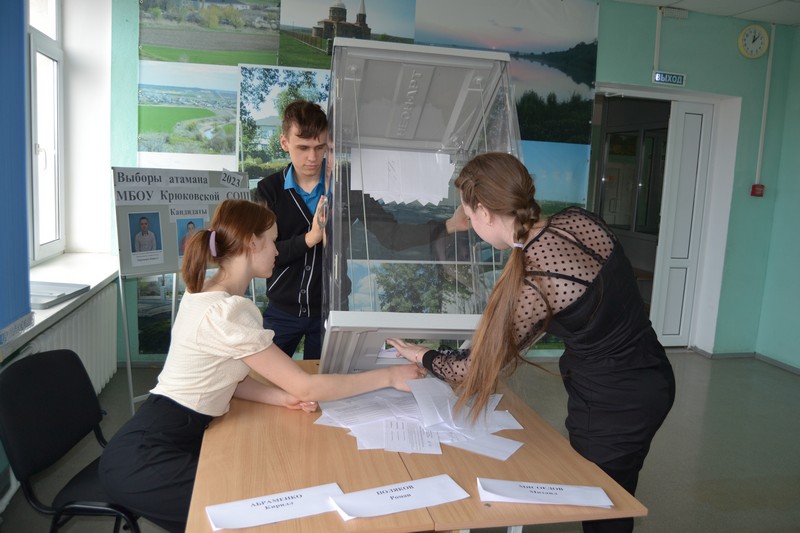 В МБОУ Крюковской СОШ 27.01.2023 состоялся первый тур выборов атамана школы. Была создана избирательная комиссия, которая занималась подготовкой и проведением выборов.