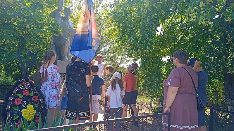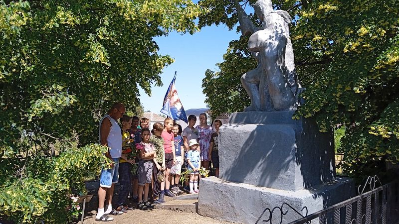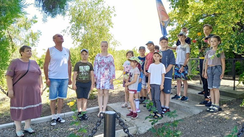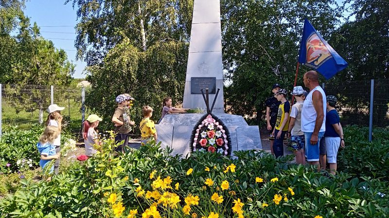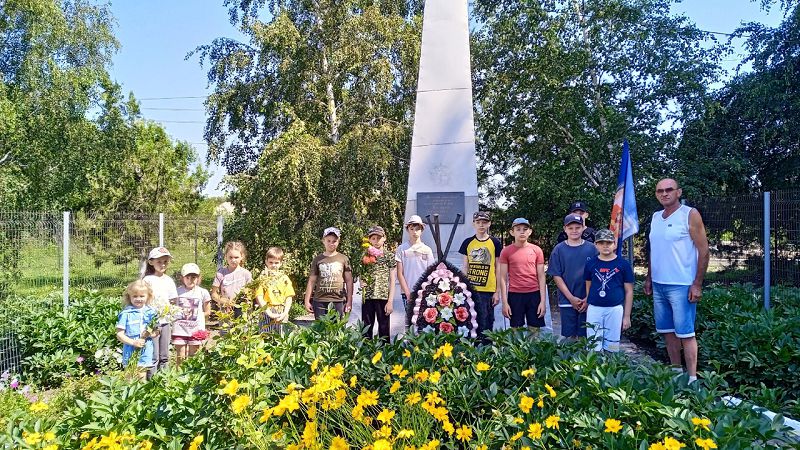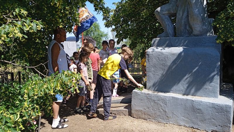 В память погибших в годы Великой Отечественной войны воспитанники лагеря "Улыбка" МБОУ Крюковской СОШ возложили цветы к мемориалу и пьедесталу.