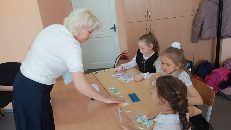 18 апреля 2023 года в МБОУ Крюковской СОШ во 2 и 3 классе прошло открытое занятие курса внеурочной деятельности по «Финансовой грамотности» по теме «Современные деньги России и других стран».