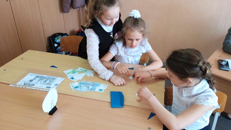 На занятии ребята научились правильно использовать изученные понятия; узнали различия современных российских монет и купюр; учились называть самые известные иностранные валюты – доллар и евро; решали задачи с элементарными денежными расчетами.