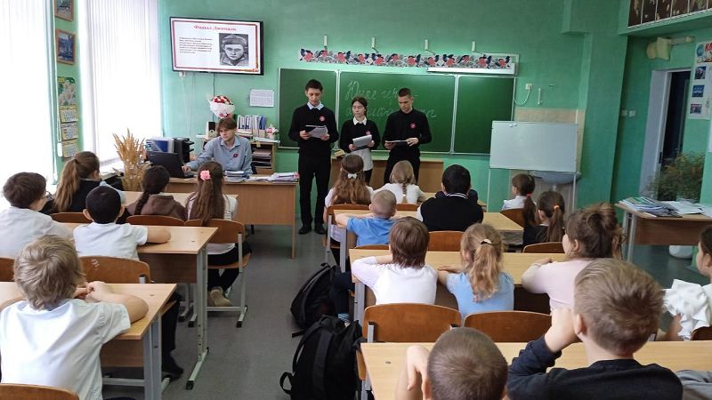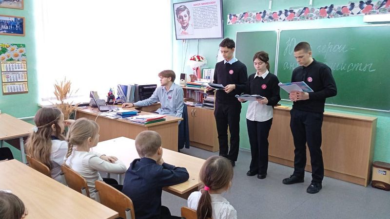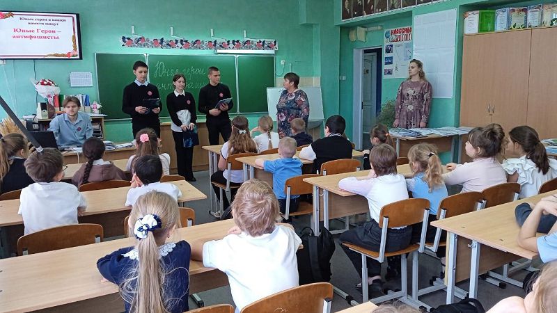 Участники движения, при поддержке советника директора по воспитанию и взаимодействию с детскими общественными объединениями - Разумейченко Е.А., провели для учащихся 1-4 классов устный журнал "Юные Герои-антифашисты", на котором рассказали об истории появления Дня юного героя-антифашиста и юных героях мира и нашей страны. Ребята вспомнили мальчишек и девчонок, которые показали, каким огромным может стать маленькое детское сердце, когда разгорается в нём священная любовь к Родине и ненависть к её врагам. Подробнее остановились на подвигах Вити Новицкого, Марата Казей, Вали Котик, Лени Голикова, Муси Пинкензон.