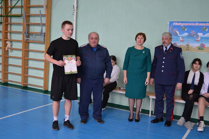 В преддверии Дня защитника Отечества учащиеся 8-11 классов приняли участие в казачьих военно-спортивных соревнованиях "А ну-ка, юноши!" Сборные команды вышеназванных классов соревновались в эстафетах на скорость, силу, меткость и работу в команде.