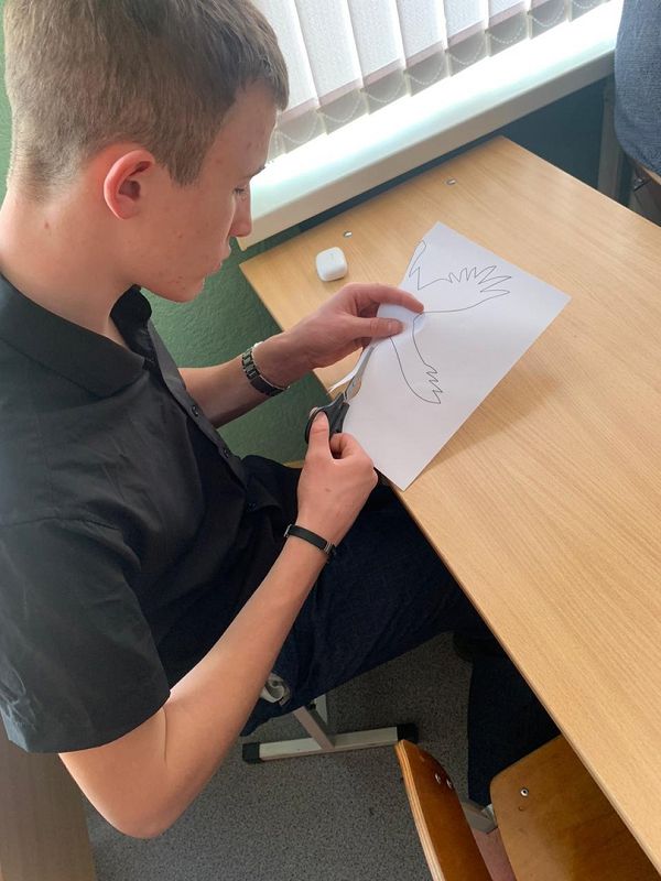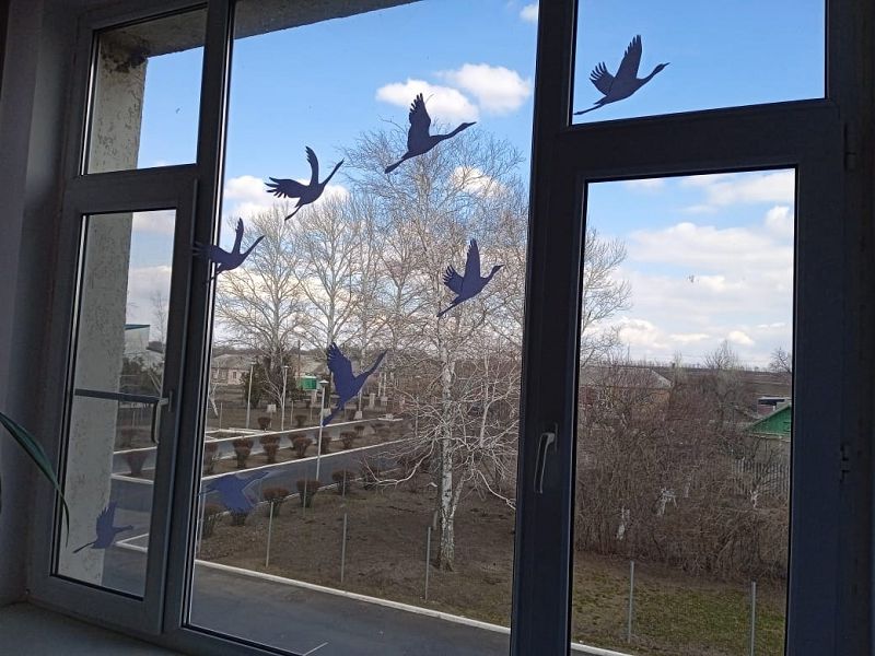 Ребята вырезали изображения с журавлями и разместили на окнах, в память о тех, кто погиб во время теракта в концертном комплексе.