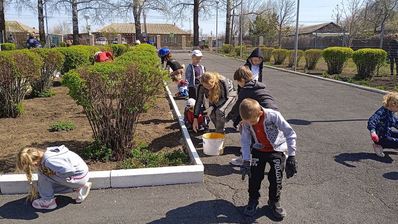 Обучающиеся, учителя, волонтёры и активисты детских движений приняли участие в экологическом субботнике, привели в порядок школьный двор и прилегающую к школьному двору территорию, побелили деревья и бордюры.