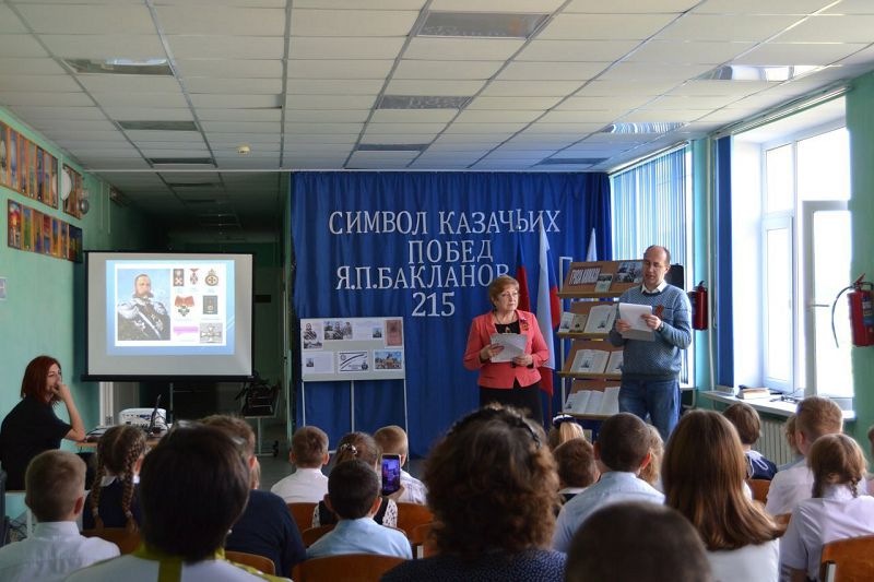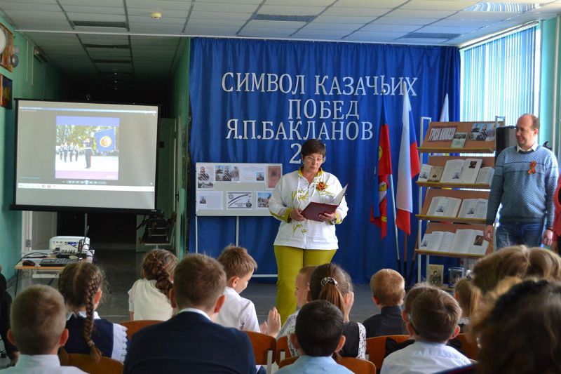 02.05.2024 к нам в школу приехали гости из МБУККР "Куйбышевская РМЦБ" Коваль О.В. и Соломощук М.М., которые провели для учащихся час истории "Символ казачьих побед Я.П. Бакланов". Мероприятие было посвящено 215-летию Донского казачьего генерала. Интересная история о Бакланове сопровождалась презентацией. Была организована тематическая выставка книг.