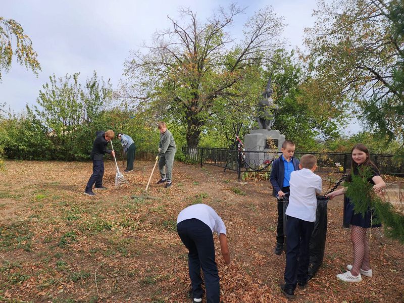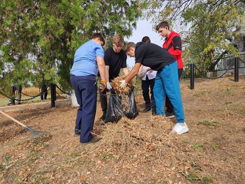 17.09.2024 в рамках проекта "ХРАНИТЕЛИ ИСТОРИИ" волонтёры добровольческого отряда "ДОБРОволец" Движения Первых МБОУ Крюковский СОШ приняли участие в субботнике по уборке территории братской могилы хутора Крюково на ул. Победы от листвы и веток.