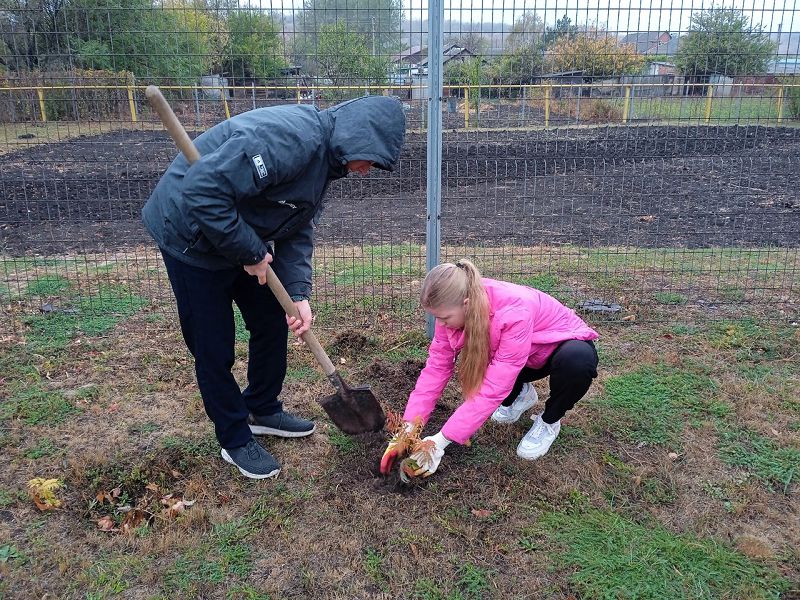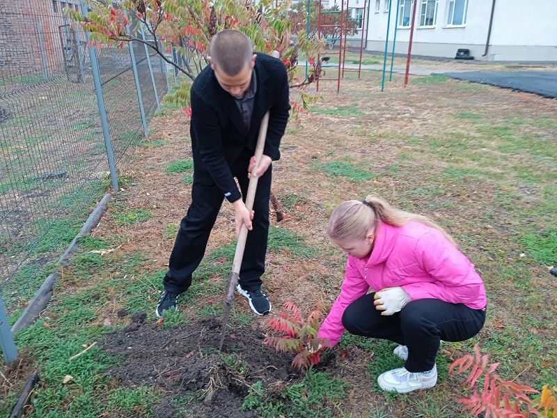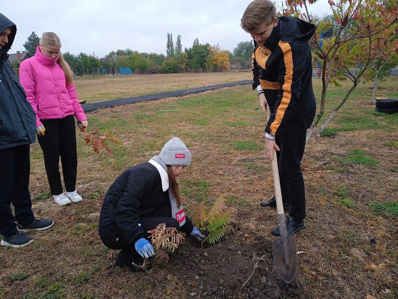 18.10.2024 волонтерский отряд нашей школы принял участие в добром деле по высадке саженцев деревьев, кустарников и цветов на территории школьного двора, с целью озеленения и зеленого насаждения территории школы, нашего села и улучшения экологического состояния планеты. Бежит время, сменяются поколения, а посаженные деревья будут продолжать расти и радовать своей красотой.