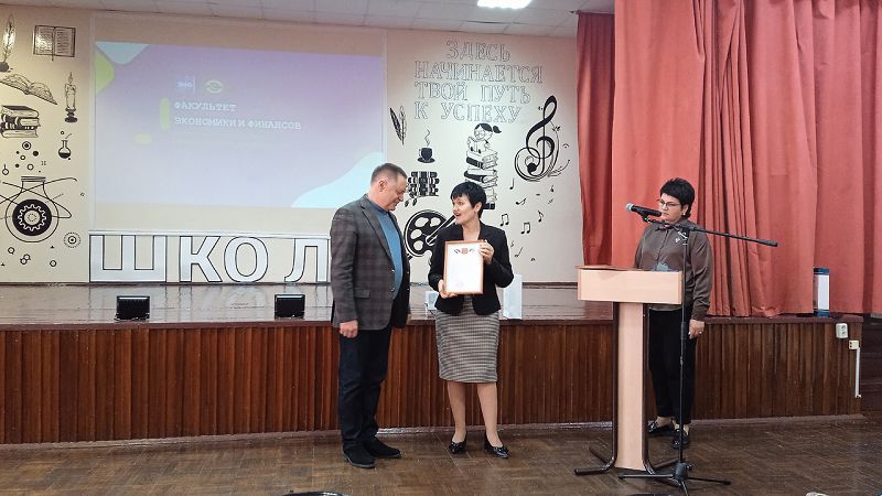 Декан факультета экономики и финансов ФГБОУ ВО «РГЭУ (РИНХ)», доктор экономических наук, профессор Джуха Владимир Михайлович, рассказал учащимся об университете и его факультетах.