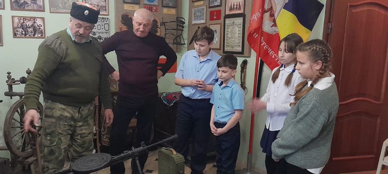 В музее при управлении казачьим юртом ребята узнали о быте и жизни казаков, об их участии в военных действиях.