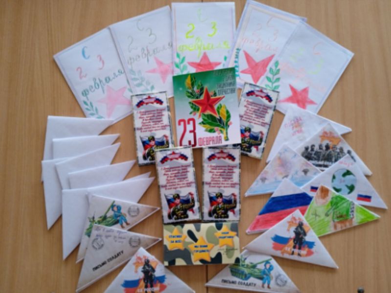 В преддверии Дня защитника Отечества волонтёры отряда "Доброволец" и Орлята нашей школы приняли участие в добром деле "Поздравь защитника Отечества". Ребята написали письма солдатам, нарисовали рисунки и изготовили своими руками поздравительные открытки и сувениры для военнослужащих, выполняющих свой долг в зоне Специальной военной операции.