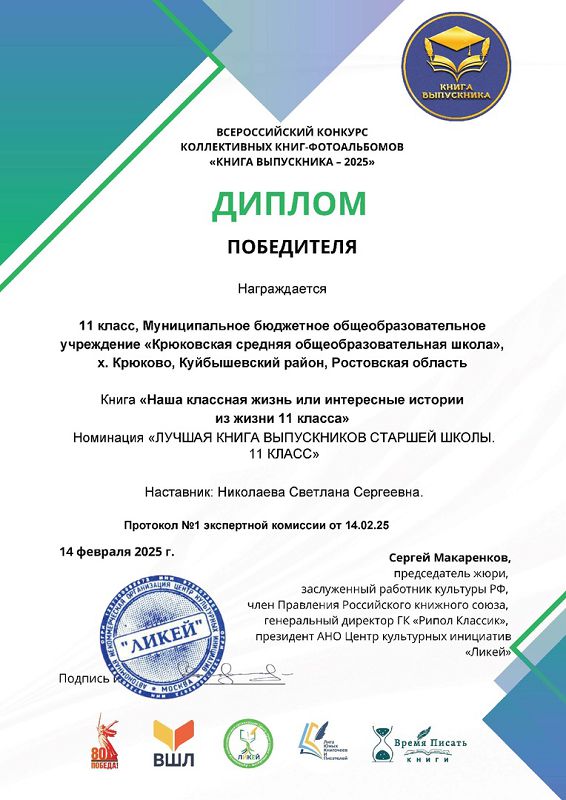 Отрадно, что последняя работа ребят стала одной из лучших во Всероссийском конкурсе коллективных книг-фотоальбомов "Книга выпускника - 2025".