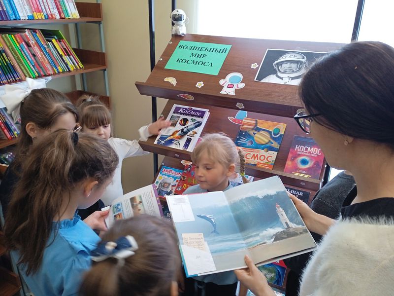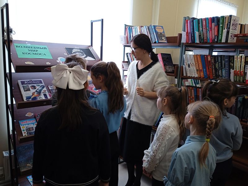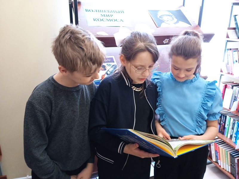 Библиотекарь Кузьмина С.В. рассказала посетителям выставки о знаменитом полете, ставшим примером мужества и героизма советских космонавтов, а также познакомила ребят с изданиями, представленными на выставке.