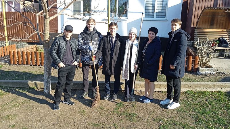 В рамках акции "Дорогие мамы, #МЫВМЕСТЕ с вами!" волонтёрский отряд Движения Первых "ДОБРОволец" с наставником, Николаевой С.С., и советником директора по воспитанию и взаимодействию с детскими общественными объединениями, Орловой Г. А., навестили Мясоедову Ирину Ивановну, мать военнослужащего, участвующего в специальной военной операции, и оказали ей помощь в уборке придомовой территории от осенней листвы.
