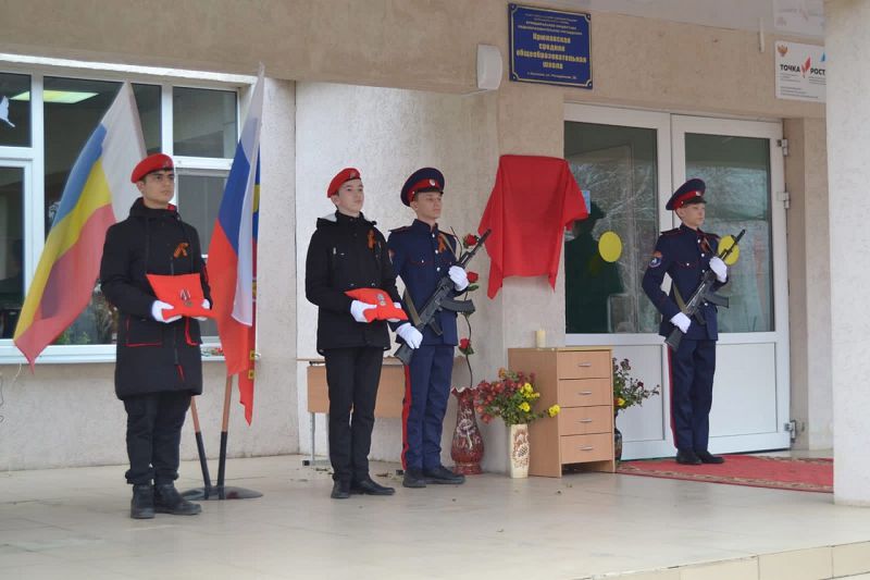 Памятный знак - открытие мемориальной доски, который вновь и вновь будет напоминать о человеческом подвиге во имя жизни, о воинской чести бывшего выпускника Крюковской школы Абраменко Дмитрия Сергеевича, погибшего в специальной военной операции на Украине.