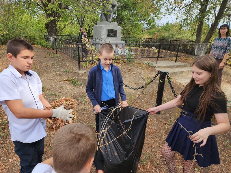 17.09.2024 в рамках проекта "ХРАНИТЕЛИ ИСТОРИИ" волонтёры добровольческого отряда "ДОБРОволец" Движения Первых МБОУ Крюковский СОШ приняли участие в субботнике по уборке территории братской могилы хутора Крюково на ул. Победы от листвы и веток.