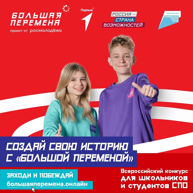 Хочешь выиграть миллион на образование или запуск стартапа, путешествие по России, путевку в «Артек» и многое другое? Тогда ждем тебя в четвертом сезоне Всероссийского конкурса «Большая перемена»!