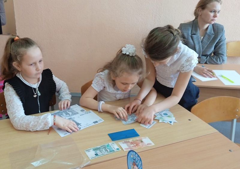 18 апреля 2023 года в МБОУ Крюковской СОШ во 2 и 3 классе прошло открытое занятие курса внеурочной деятельности по «Финансовой грамотности» по теме «Современные деньги России и других стран».