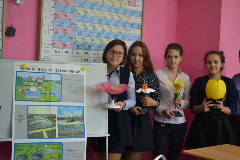 05.10.17 года в школе был проведен открытый урок экологии на тему: «Мы в ответе за нашу планету». Форма проведения открытого урока – была путешествие по станциям: «Охрана вод от загрязнения», «Цветочная поляна», «Охрана почвы».