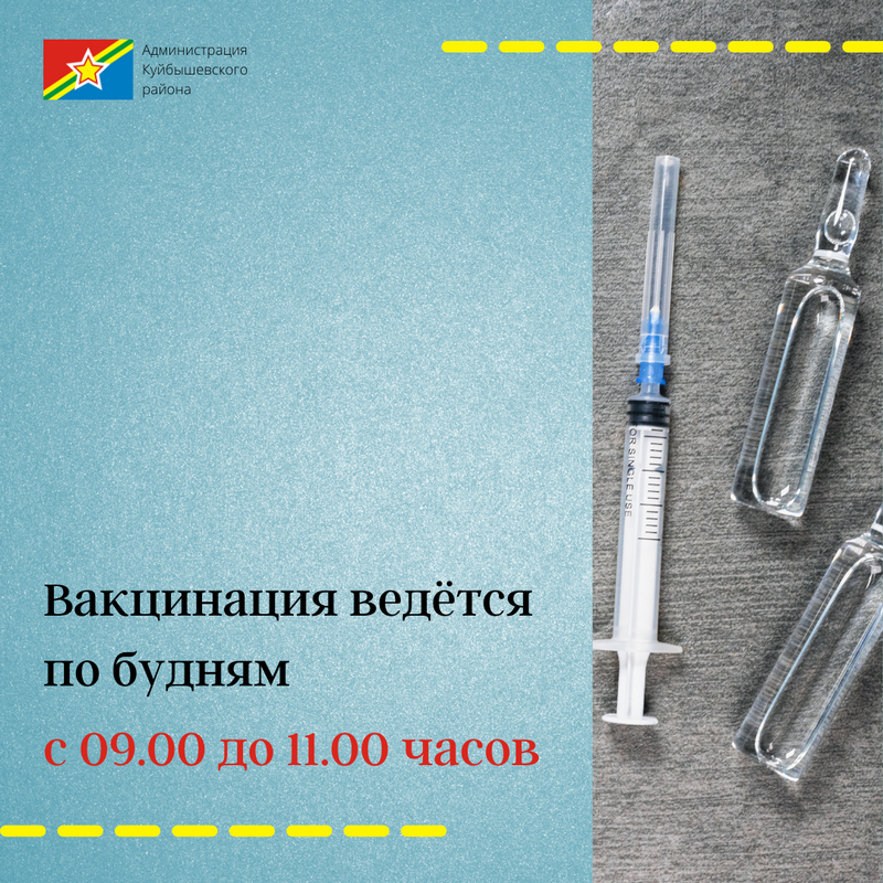 Вы можете прийти в любой будний день с 09.00 до 11.00 часов в прививочный кабинет центральной районной больницы Куйбышевского района.