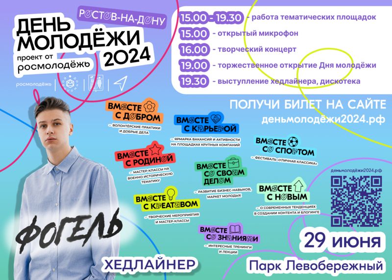 На территории г. Ростова-на-Дону (парк культуры и отдыха «Левобережный») запланировано проведение масштабного мероприятия, приуроченного к празднованию Дня молодежи, которое состоится 29.06.2024.