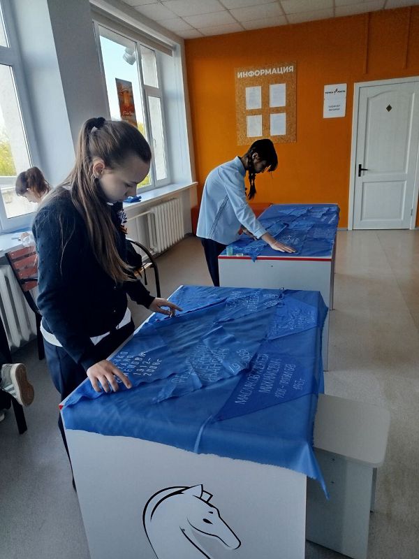 Участники кружка "Поиск" МБОУ Крюковской СОШ со статусом казачья приняли активное участие в акции " Солдатский платок". Это не просто акция - это возможность выразить признательность каждому защитнику Отечества, своеобразная рукотворная летопись человеческих судеб, записанные рассказы о наших земляках, погибших в годы ВОВ.